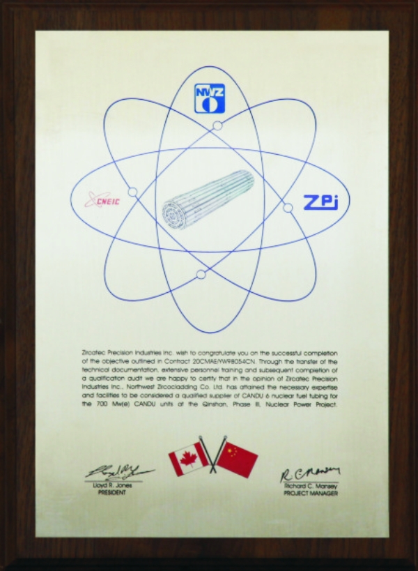 國核鋯業(yè)所屬西北鋯管有限責(zé)任公司獲得加拿大