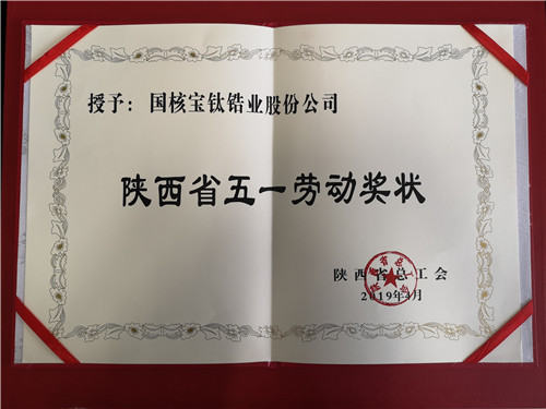 國核鋯業(yè)榮獲陜西省五一勞動(dòng)獎(jiǎng)狀